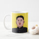 Souvernirs de république populaire démocratique de Corée (Corée du Nord). Tasse de café avec deux images suprêmes du Jong-ONU de Kim du Chef. Changez le style de tasse et customisez la couleur d'arrière - plan.