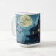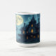 Une maison hantée éffrayante et déplaisante sous une pleine lune, avec des arbres éffrayants autour, fait une belle tasse d'Halloween.