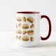 Amuse tasse de café ou tasse de voyage pour la personne qui aime manger des hamburgers. Un grand motif sandwich illustré recouvre cette tasse blanche avec des couleurs optionnelles à l'intérieur et sur la poignée.