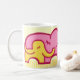 Montrez votre amour à votre maman avec cette "Meilleure maman du monde" des éléphants graphiques roses et jaunes serrés dans la tasse. Idéal pour le cadeau de jour d'une mère. Illustration et design uniques de Sarah Trett.