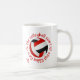 Cette équipe sportive de volleyball colore une tasse de café avec un monogramme, avec la phrase typographique "Le terrain de volleyball est mon endroit heureux" et deux contours en rouge encerclant un volleyball avec des panneaux de couleur rouge, noir et blanc - personnaliser avec un monogramme - par katz_d_zynes
