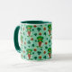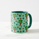 Adorable gnomes leprechaun entourés de pots d'or et de trèfle chanceux! Arrière - plan vert mousse de mer. Choisissez votre poignée et la couleur intérieure ou gardez la couleur verte/turquoise profonde. Profitez de votre boisson St Patrick's Day dans cette mignonne tasse ! Super cadeau saisonnier pour enseignant, aussi!