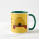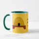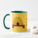 L'abeille Skep se ruque de part et d'autre du texte "Apiaristes le font pour la ruche !". L'Arrière - plan est jaune et la bordure est verte.