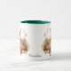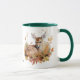 Cette tasse a une jolie aquarelle d'automne qui présente un adorable cerf tacheté au milieu des feuilles d'automne brune et orange. L'image est imprimée deux fois sur la tasse, avec votre nom ou monogramme en brun entre les images.