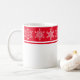 La tasse de café/thé/cacao en céramique est présentée avec un imprimé festif de flocons de neige de Noël. Customisez cet objet ou achetez tel quel.