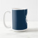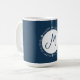 Profitez d'une tasse chaude de joie de vacances avec cette tasse de café en monogramme bleu et blanc Happy Holidays, ornée de délicats flocons de neige blancs. Idéal pour siroter votre café, thé ou cacao chaud favori pendant la saison festive, ce design simple mais intemporel fait un cadeau merveilleux ou un ajout charmant à votre décor de cuisine de vacances.