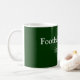 Une tasse verte et blanche avec un texte blanc disant "les footballeurs le font dans le but". Une autre grande tasse de The Innuendo Shop ! Achetez-le pour votre boule de kicker résident!
