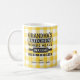 Célébrez l’amour de grand-mère pour la cuisine et la famille avec cette tasse "La cuisine de grand-mère - où les repas deviennent des souvenirs". Conçue avec un charmant arrière - plan jaune en vichy et un espace personnalisable pour un message personnel chaleureux de la famille, cette tasse est à la fois un souvenir sentimental et un ajout cosy à son décor de cuisine. Qu’elle apprécie son café du matin, son thé ou son cacao chaud, cette tasse magnifiquement conçue est un cadeau parfait pour grand-mère pour les anniversaires, la fête des mères, la fête des grands-parents, Noël ou toute occasion spéciale. Un rappel quotidien de l'amour et des moments chéris qu'elle crée dans la cuisine !