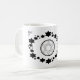 L'Hanoukka de Fête Juive. Ce design noir et blanc présente l'"Etoile de David". Des étoiles entourent l'Étoile de David dans une forme ovale. Les coins sont décorés de feuille et de l'étoile de David. "Hanoukka 2014" est imprimé sur la tasse. Ces tasses sont disponibles dans un assortiment de styles, de couleurs et de tailles.