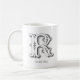 Tasse à café blanc personnalisable avec la lettre R en typographie gris foncé unique. Ajoutez votre nom à l'aide de la fonction de personnalisation.
