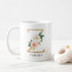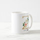 Cute, élégante tasse à café monogramme avec la lettre "Z" dans un style faux feuille d'or ornée de fleurs d'aquarelle et de verdure blanches et roses. Personnalisez la tasse de café en ajoutant votre nom ou votre texte personnalisé.
