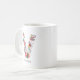 Tasse à lettre florale fantaisiste, festive et élégante, avec des fleurs dans le feuillage en rouge, vert, or et gris. Personnalisez en ajoutant des noms ou une courte phrase. D'autres couleurs et lettres sont disponibles.