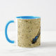 La libellule assise sur le sable, une ombre est visible sous le corps. Cet insecte, de l'ordre Odonata, a des ailes transparentes et de grands yeux. Le bleu vif du corps est ramassé dans la couleur la jante et la poignée de la tasse. Un grand cadeau pour l'entomologiste dans votre vie.
