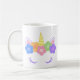 Visage stylisé de licorne avec le klaxon, les oreilles, les cils, et les fleurs