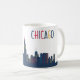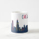 Illustration moderne et plate avec silhouettes de Chicago de ses bâtiments classiques et monuments culturels.