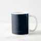 Cette tasse présente un design bleu foncé abstrait avec des lignes brillantes et des particules de poussière. Personnalisez-le avec votre nom en bas.