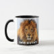 Blanc et noir 11 oz. combo tasse avec une image, de part et d'autre, d'un lion africain et un message important facultatif. Voir le pot de bonbons assorti, plaque en papier, carreaux en céramique carré et dessous de verre. Consultez la collection de la Mug Nature & Wildlife dans la section HOME.