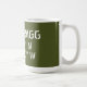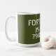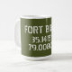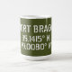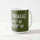 Tasse à café avec coordonnées de latitude et longitude pour Fort Bragg, près de Fayetteville, Caroline du Nord. Police blanche de style crayon sur l'arrière - plan vert de l'armée.
