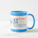 Autour du monde par avion. Une tasse à café élégante et unique. Image d'art textuel du code international d'aéroport LAX, textes Los Angeles, États-Unis, coordonnées géographiques, et plus sur deux côtés de la tasse Le même concept avec une image silhouette d'un gros avion à passagers au milieu de la tasse. Citation de Mark Twain personnalisable : "...rien ne libère un homme et élargit les instincts bienveillants que la nature lui a mis comme voyage et contact avec de nombreuses sortes de gens." - imprimé au-dessus des rubans bleus en haut et en bas de la tasse. Vous pouvez modifier toutes les images et vous pouvez modifier ou supprimer deux textes modèles indépendamment. Si vous avez besoin de déplacer des images, changer la police et la couleur de la police, la couleur des rubans, s'il vous plaît, utilisez le bouton "Personnaliser". Soyez créatif, customisez, achetez le beau cadeau pour vos membres de famille, amis, compagnie, ou pour vous-même, profitez, et soyez heureux!