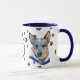 Cette tasse pour le propriétaire australien du chien de bétail présente un portrait aquarellé d'un magnifique chien de bétail bleu et bronzé portant un collier bleu. L'image est imprimée deux fois, et entre eux est un ovale avec le texte noir qui dit "Aimez mon chien de bétail". Les images ovales et de chien sont placées sur un arrière - plan blanc parsemé d'empreintes de pattes noirs. Vous pouvez facilement changer le texte en autre chose, ou le personnaliser, si vous le souhaitez.