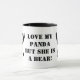 Panda noir et blanc mignon debout sur les pattes arrières, surélevé au-dessus de la tête. Avec le texte changeant qui dit : "Aimez mon panda, mais elle est une ours"