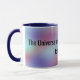 C'est une citation cool inspirante de la tasse de café bleu imprimé qui dit "L'Univers sait le bon moment pour VOUS !" en lettres noires sur un arrière - plan ludique abstrait violet et bleu. Il fera une belle idée de cadeau inspirant pour un amoureux du café.