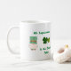 M. Leprechaun dans le Clover Patch avec un leprechaun et des trèfles sur une tasse de café.