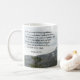 Cette tasse montre un aperçu d'une falaise rocheuse. Elle contient un vers d'écriture sainte décrivant Dieu en tant que ma roche et le salut du 62:5 de psaume - 8