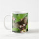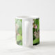 Cette superbe tasse présente la photo d'un beau papillon tropical entouré de jolies fleurs tropicales roses et de feuilles verts. Cette espèce est appelée papillon à queue épaisse (Papilio romanzovia). Il a de belles marques noires et écarlate sur toutes ses ailes. Il vient des Philippines. La photo a été prise en utilisant la macro photographie pour un résultat étonnamment détaillé.