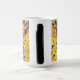 Mug magique avec la peinture à l’huile de Gustav Klimt Lady with Fan (1918). Une femme portant un kimono bleu tient un ventilateur rouge contre un arrière - plan jaune coloré de fleurs et de paons. Un grand cadeau pour les amateurs de Japonisme et d'art européen.