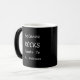 Add hot liquid to reveal your design as the black mug turns white.