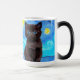 Magic Mug avec un chat noir dans la peinture de Van Gogh Starry Night! Ce chaton aux yeux bleus regarde agréablement d'un arrière - plan de tourbillons bleus et d'une lune jaune vif. Un cadeau fantastique pour les amoureux de les chats et les collectionneurs d'art hollandais !