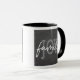 Cadeau ils le cadeau de l'amour et de la joie de famille avec cette tasse moderne et à la mode avec un arrière - plan de tableau. Comporte le sentiment de la "joie de famille" dans un manuscrit marqué avec des lettres par main. Grand cadeau de famille !