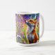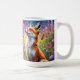 A majestic fox sits in a field of vibrant flowers, gazing up at the sky. Its beautiful red fur shines with white accents, and its pointy ears are alert. Butterflies flutter among the blossoms, surrounded by pink and purple hues. The fox rests gracefully in the long grass, encircled by the colorful flowers.