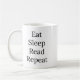 "Mangez, dormez, lisez, répétez" tasse à café est une expression parfaite pour les gens qui aiment lire. Pour la main gauche et la main droite. Lettres noires avec arrière - plan blanc. 11 oz. Un cadeau d'anniversaire parfait pour ceux qui dans votre vie aiment lire.