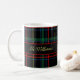 Personnalisez cette tasse de café belle et admirablement marquée avec des lettres. Le champ de conception est le noir, plaid de tartan écossais vert-foncé, avec les accents de rouge, bleus et jaunes. Le lettrage est un beau manuscrit facile à lire en jaune contre une bande noire autour du midline de la tasse. Mettez le nom ou les initiales de votre choix des deux côtés de tasse avec l'outil de édition de Zazzle. Au centre du champ de lettrage. entre le lettrage les modèles est une belle décoration de manuscrit-style.