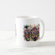This ceramic coffee mug is shown with Mardi Gras image prints.