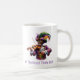 This ceramic coffee mug is shown with Mardi Gras images, Text of "Let the good times roll' is beneath the prints.