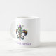 This ceramic coffee mug is shown with Mardi Gras images, Text of "Let the good times roll' is beneath the prints.