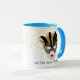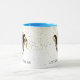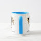 Cette tasse bleu et blanc a l'image d'un Mardi Gras masques sur de petites étoiles dorées sur un arrière - plan blanc. Le texte de "Let the good times roll" se trouve sous le masque de chaque côté de la tasse. Customisez cet objet ou achetez tel que conçu. Couleurs : poignée et intérieur bleu vif, arrière - plan blanc, étoiles dorées et masques dorés et noirs. Images et texte imprimés sur.