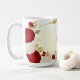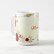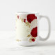 Mug botanique aux fleurs blanches et rouge foncé romantiques avec feuilles dorées