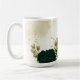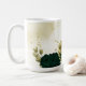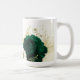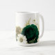 Magnifique mug avec fleurs vert émeraude, ivoire, blanches et or avec feuilles dorées.