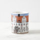 Une photographie du Rathaus et du marché en Lutherstadt Wittenberg, Saxe Anhalt, Allemagne est décrite sur cette tasse en céramique blanche.