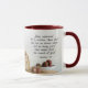 Une tasse d'Écriture inspirante représente une miche de pain et des traits de la Bible Verse Matthieu 4:4, Jésus répondit : "Il est écrit : "L'homme ne vivra pas sur le pain seul, mais sur chaque parole qui vient de la bouche de Dieu."
