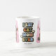 Offrez à un propriétaire de chat cette superbe tasse à café rétro pour animaux de compagnie avec la phrase 'MEILLEURE MAMAN DE CHAT' dans une police vintage multicolore des années 60, des fleurs blanches grasses, 2 photos du mignon chaton, et leur nom. Cette tasse à photo personnalisée serait le cadeau idéal pour la fête des mères ou l'anniversaire de quelqu'un !