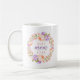 Cute Mère's Day tasses à café personnalisées avec la citation "Best Mom Ever". Ajoutez votre propre nom ou message personnalisé dans la jolie couronne florale rose pastel et violet à l'aquarelle. Utilisez les outils de conception pour choisir n'importe quelle couleur arrière - plan, modifier les polices de texte et les couleurs et ajouter vos propres photos pour créer un cadeau de fête des mères pour maman et grand-mère.