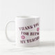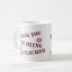 Offrez à votre professeur un café ou une tasse de thé unique à la fin de l'année scolaire ou pendant les vacances. Cette tasse rose et violet présente les mots "Merci pour être mon professeur" dans un motif en mosaïque rose et violet avec deux fleurs roses vives. La solide couleur arrière - plan est rose pâle et peut être customisée si vous le désirez.