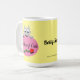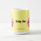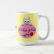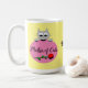 Mère des chats Cute Grey Chat avec Mug à café Rose Rouge. Cette tasse de café présente les mots Mère des Chats sur un ovale rose, une rose rouge en dessous et un mignon chat gris en bas d'en haut ! Ajoutez le nom d'une personne spéciale à ce design pour le rendre spécial. La couleur Arrière - plan est jaune pâle.