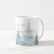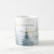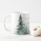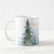 Watercolor winter trees in shades of green paired with script and modern typography personalize coffee mug.