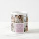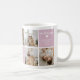 Créez une tasse à café photo personnalisée pour maman avec 7 photos de votre choix affichées dans une mise en page modèle en grille carré, trois zones de couchage colorées pour ajouter votre propre texte. Le premier cube dit "Bonne fête des mères". Le deuxième cube se lit "Best Mommy Ever" dans une combinaison de script et de typographie branchée et d'un mignon petit coeur blanc. La troisième case indique "We Love You", nom et année. Les cubes peuvent être changés en n'importe quelle couleur en cliquant sur l'option personnaliser. Personnalisez simplement en ajoutant la célébration, le message, le nom et l'année pour faire un cadeau spécial de conservation. Parfait pour les anniversaires, la fête des mères ou toute autre occasion spéciale !
